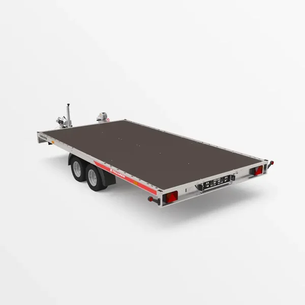 Autotransporttrailer met een kantelbaar laadplatform. Een lage hellinghoek (6°) maakt het gemakkelijk laden van voertuigen met een lage bodemvrijheid. De hellingen zijn verborgen onder het transportoppervlak. Het platform is met 109 mm verbreed, wat zorgt voor betere compatibiliteit met verschillende voertuigtypes.