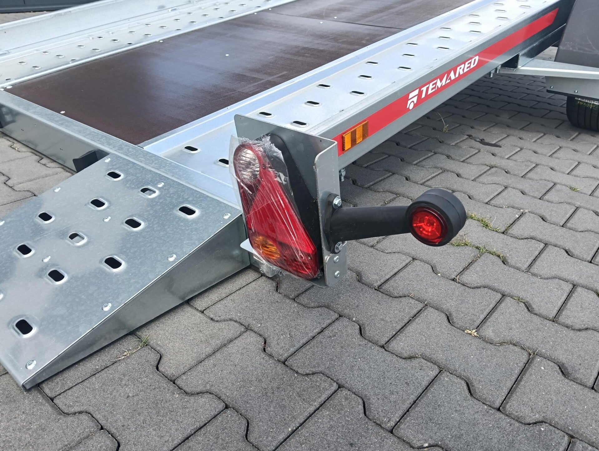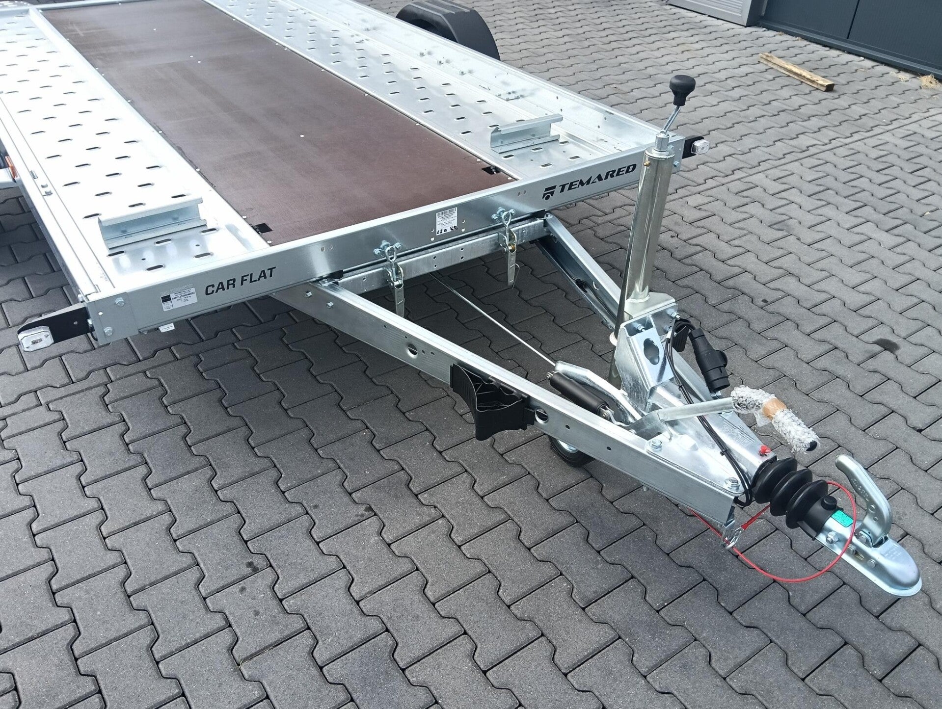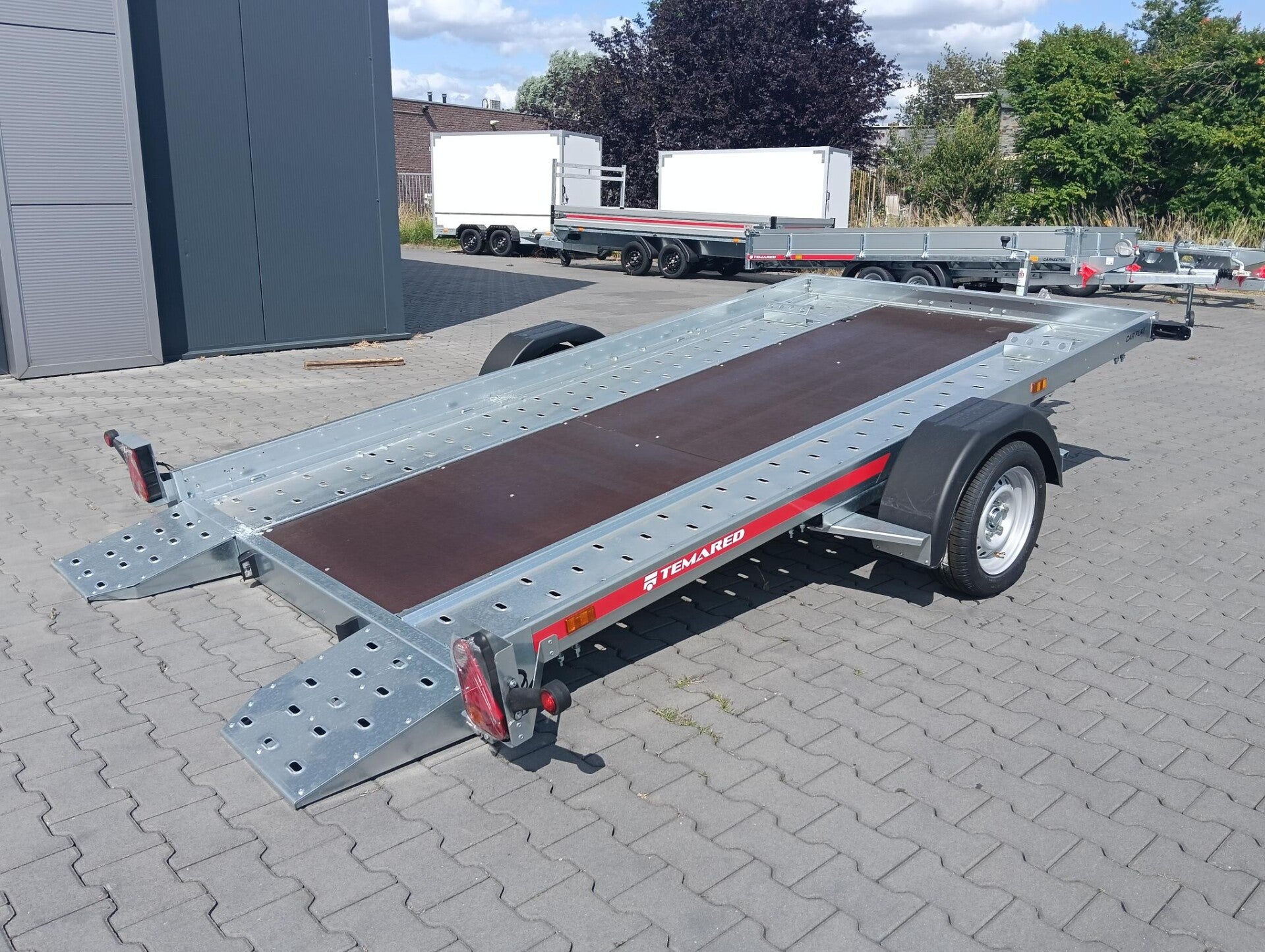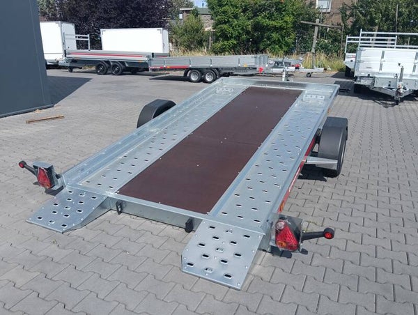 Kantelbare Autotransporttrailer met zeer sterke lohr-type transportoppervlak. Wielen gemonteerd aan de buitenkant van het transportoppervlak dus extra laag!. Speciaal voor kleine auto's.