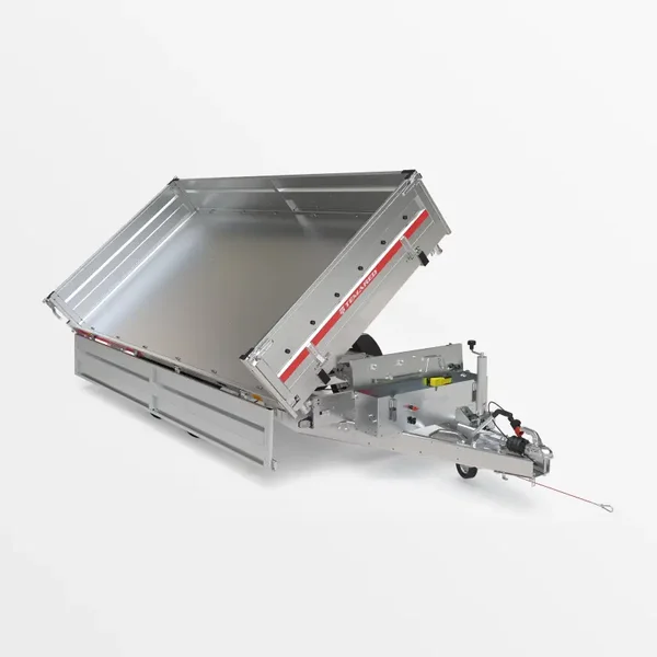 Deze aanhangwagen beschikt over een 3 zijdig elektrisch kiepsysteem met een 5 traps hydraulische cilinder met een kiephoek van 50 graden!