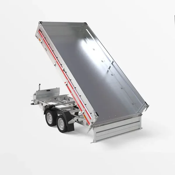 Deze aanhangwagen beschikt over een 3 zijdig elektrisch kiepsysteem met een 5 traps hydraulische cilinder met een kiephoek van 50 graden!