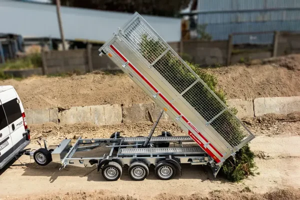 Deze aanhangwagen beschikt over een 3 zijdig elektrisch kiepsysteem met een 5 traps hydraulische cilinder met een kiephoek van 50 graden!
