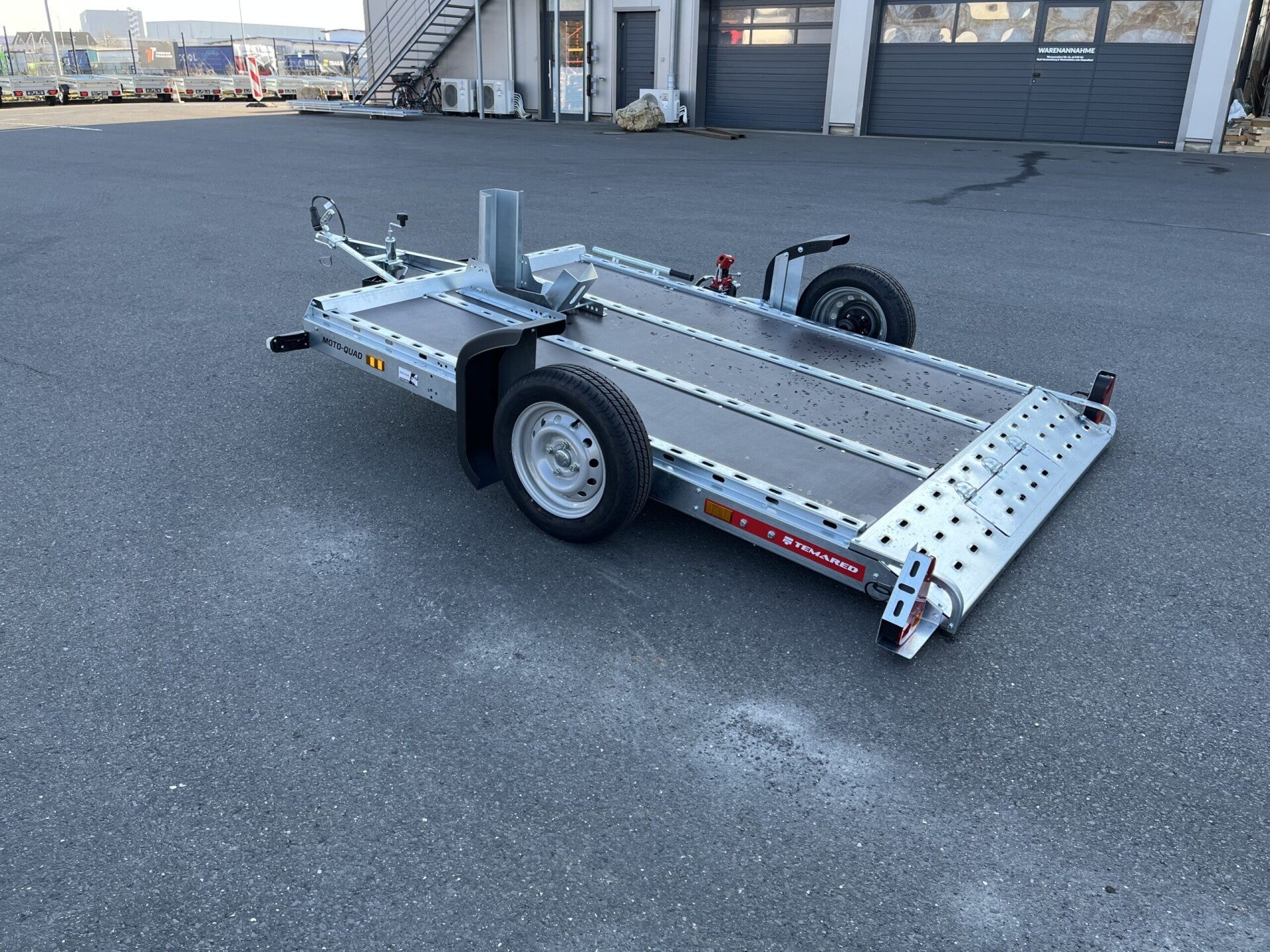 Platform met de mogelijkheid van hydraulische verlaging van het transportoppervlak voor het laden van bijvoorbeeld motorfietsen met een zeer lage oprijhoek. Mogelijkheid om tot 3 mechanische wielblokkers te monteren, wat extra veiligheid biedt tijdens transport.